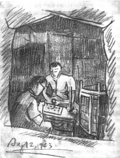 除了詩歌,屠老還從母親那里學(xué)習(xí)繪畫。他尤喜速寫。十九歲那年夏天,在呂城,屠岸畫了很多速寫,其中有一幅他與哥哥下棋的炭筆自畫速寫,他自己極為喜歡,并一直保存下來。后來這幅畫被他選入自述集《我的詩歌創(chuàng)作·“詩呆子”的癡迷狀態(tài)》中的插圖。