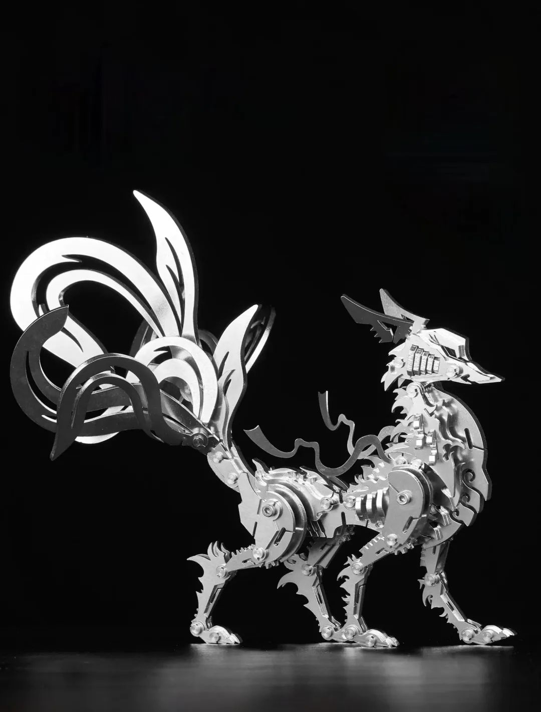 寫作過程中,為了模擬出“械人”和“獸”的造型,我找了許多酷拼素材和金屬積木。比如小說里有一個“九尾”形象,在志怪小說里,九尾狐耳熟能詳,有妖精和魅惑的特點,有人的造型,也有動物的造型。而在酷拼作品當(dāng)中,我也能用金屬積木、螺絲等零件拼出“九尾狐”的造型來(包括其他造型也有)……當(dāng)我看到成品擺在眼前的時候,我真的覺得機(jī)械活了,古風(fēng)皮下的金屬脈絡(luò)也活了,這個故事也是活的。