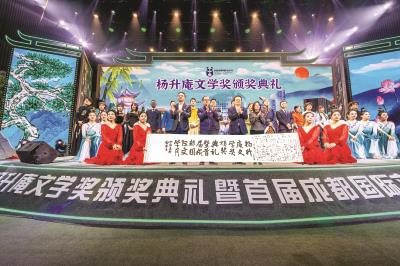 “楊升庵文學(xué)獎(jiǎng)?lì)C獎(jiǎng)典禮暨首屆成都國(guó)際文學(xué)月開(kāi)幕式”日前在成都新都區(qū)升庵書(shū)香劇場(chǎng)舉行?,F(xiàn)場(chǎng)揭曉了首屆楊升庵文學(xué)獎(jiǎng)獲獎(jiǎng)名單并舉行隆重的頒獎(jiǎng)儀式。