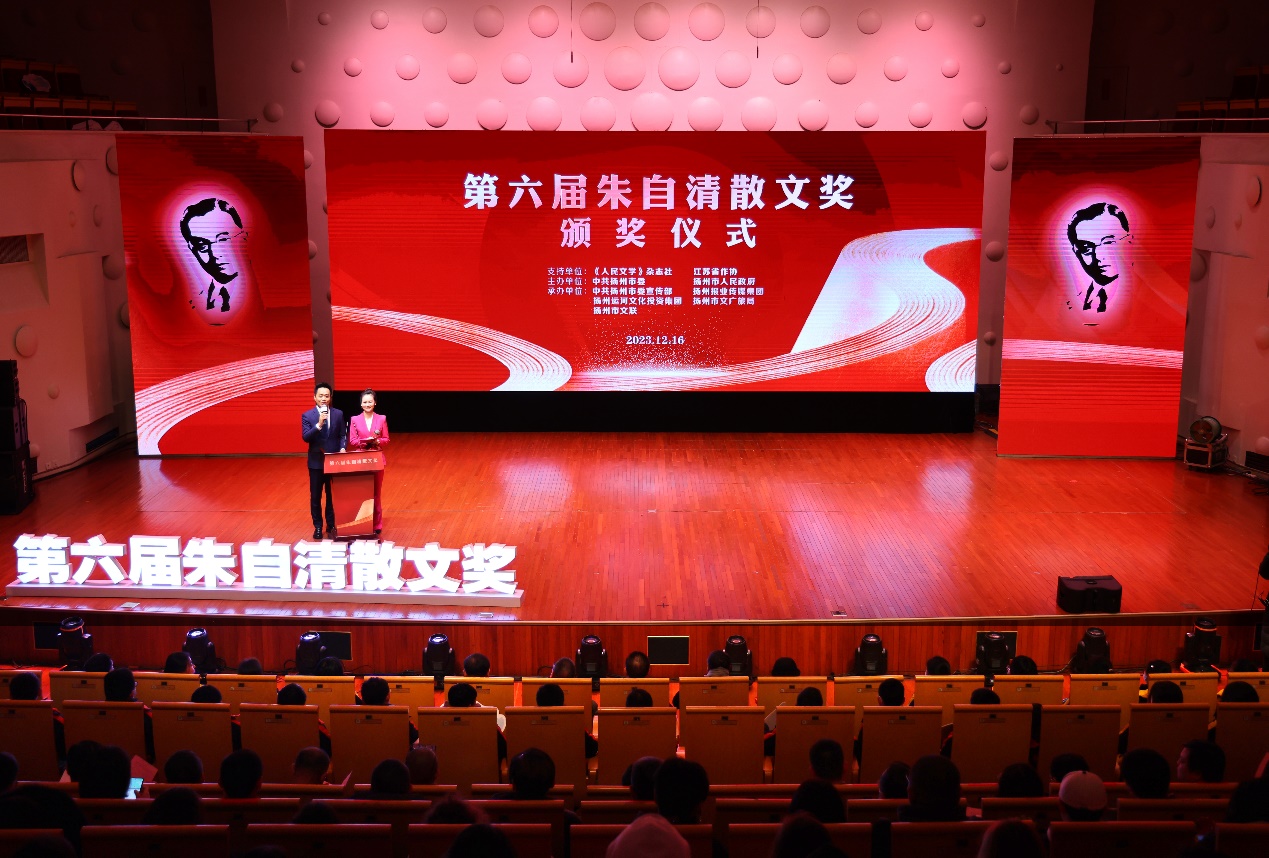 12月16日,第六屆“朱自清散文獎”頒獎儀式在揚州市音樂廳舉行。本屆“朱自清散文獎”由《人民文學(xué)》雜志社、江蘇省作協(xié)學(xué)術(shù)支持,中共揚州市委、揚州市人民政府主辦,中共揚州市委宣傳部、揚州報業(yè)傳媒集團、揚州運河文化投資集團、揚州市文廣旅局、揚州市文聯(lián)共同承辦。