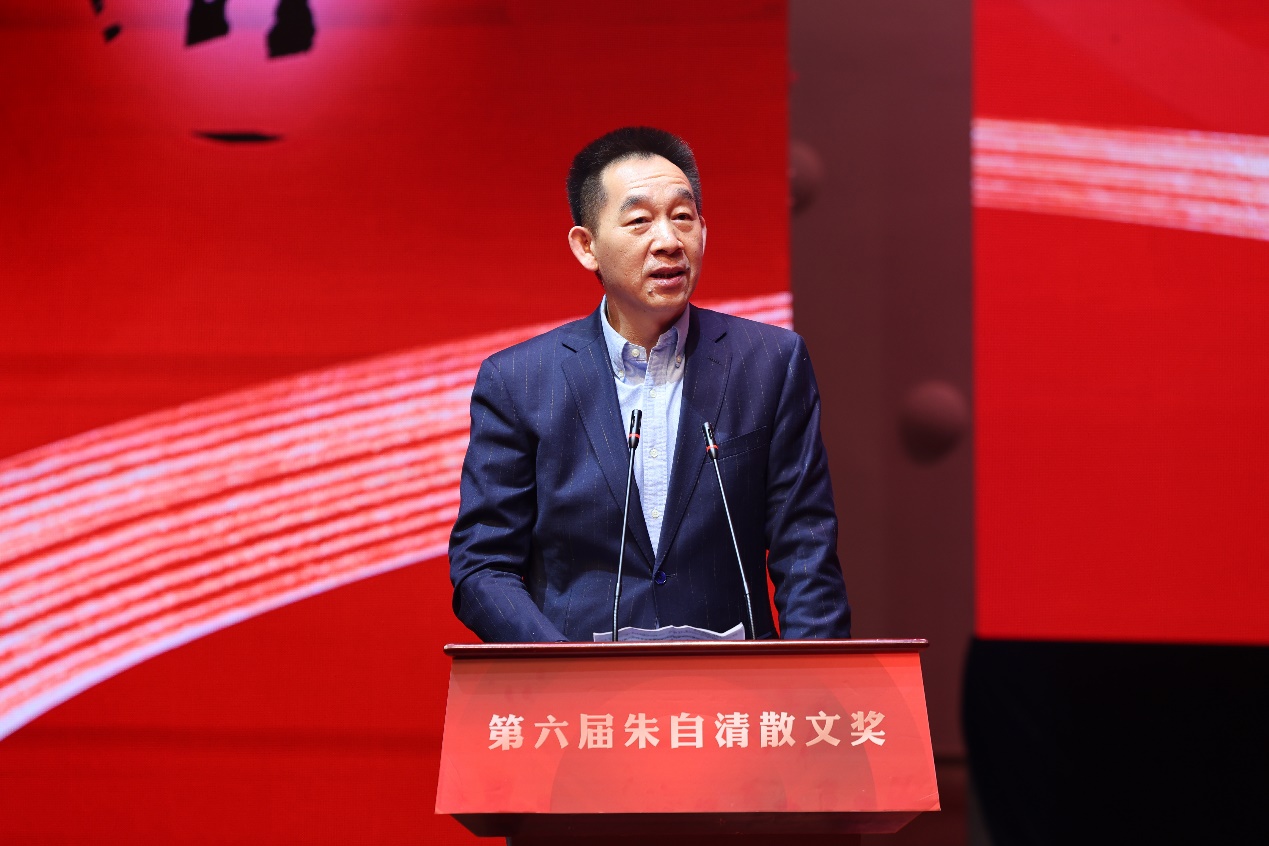 王進健致歡迎辭并特別談到,朱自清先生是文學(xué)巨匠、文化先驅(qū)、民族脊梁,他生長于揚州、求學(xué)于揚州、任教于揚州。在朱自清先生的家鄉(xiāng)舉辦“朱自清散文獎”頒獎儀式,既是緬懷朱自清先生,也是傳承、弘揚先生的文學(xué)精神,推動更多優(yōu)秀文學(xué)精品不斷涌現(xiàn)。