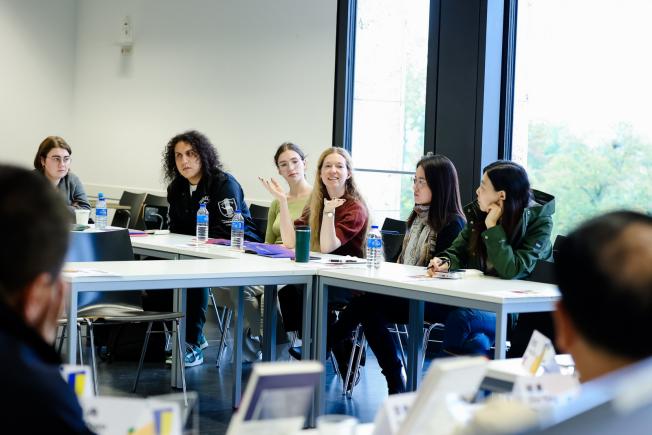 法蘭克福大學建于1914年,又名歌德大學,是德國最有名望的前十所大學之一。在法蘭克福大學,作家范穩(wěn)、祝勇、弋舟、張楚與漢學系教授楊治宜、德國漢學家郝慕天(Martina Hasse)進一步深度交流,以“新時代文學——尋找屬于自己的文學領地”為主題,圍繞文學創(chuàng)作與藝術形式創(chuàng)新等話題展開了熱烈探討。四位作家向德國青年分享了各自寫作過程中的思考、感受,講述了對他們文學創(chuàng)作產(chǎn)生過重要影響的人和事,引起了德國青年的濃厚興趣。作為將中國文學帶到德國的主要德語譯者之一,郝慕天也做了精彩發(fā)言。她與學生們分享了自己對于中國文學作品的理解和熱愛,并結合多年翻譯經(jīng)歷總結了中國文學在德語文學世界和英語文學世界里的境遇。學生們還就創(chuàng)作題材、故事取材、翻譯技巧等內(nèi)容與作家們進行了深入的探討和交流。