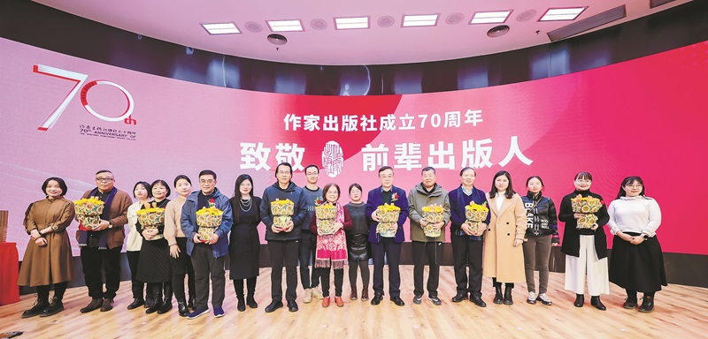 自1953年成立以來,作家出版社走過了70年不平凡歷程,用一部部經(jīng)典文學(xué)作品鋪就了輝煌的成長發(fā)展之路。作為我國文學(xué)出版事業(yè)的重要陣地,近年來,作家出版社堅(jiān)持以習(xí)近平新時(shí)代中國特色社會(huì)主義思想為指引,加強(qiáng)現(xiàn)實(shí)題材出版規(guī)劃,出版了一大批膾炙人口、催人奮進(jìn)的時(shí)代經(jīng)典,為推動(dòng)新時(shí)代文學(xué)繁榮發(fā)展作出了重要貢獻(xiàn)。圖為11月30日舉行的作家出版社成立70周年座談會(huì)上,作家出版社青年編輯向老同志代表獻(xiàn)上鮮花。