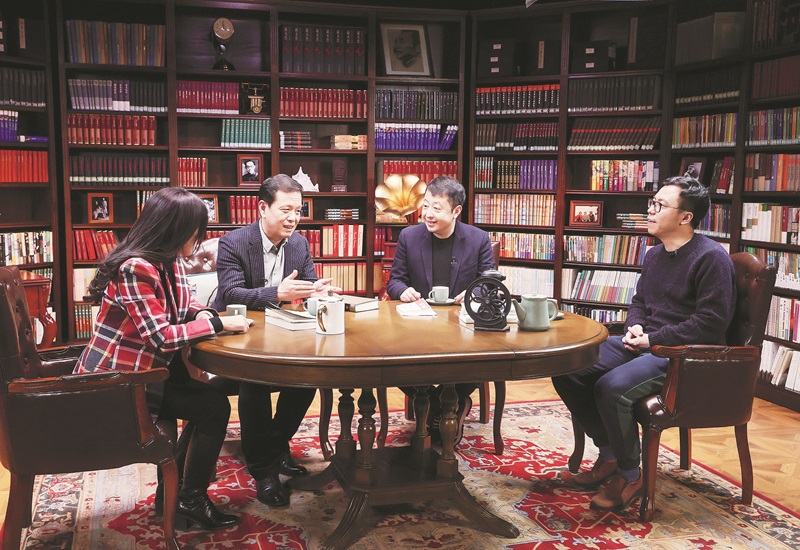 2023年,中國作協(xié)深化與國家廣電總局的戰(zhàn)略合作,建立與北京市廣播電視局、北京電影學(xué)院等單位的常態(tài)化合作機(jī)制,不斷拓展與省級(jí)衛(wèi)視、芒果TV、快手、愛奇藝、抖音等影視機(jī)構(gòu)、互聯(lián)網(wǎng)平臺(tái)的合作,向首屆中國電視劇大會(huì)、首屆中國紀(jì)錄片大會(huì)、首屆北京網(wǎng)絡(luò)視聽藝術(shù)大會(huì)推薦優(yōu)秀文學(xué)作品,一年來通過多種渠道推薦文學(xué)作品近800部。圖為由中國現(xiàn)代文學(xué)館策劃、騰訊視頻播出的文化漫談節(jié)目《文學(xué)館之夜》。