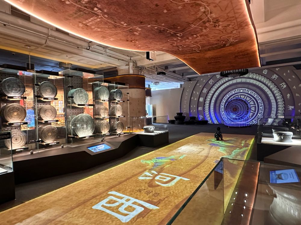 走進(jìn)展廳,“六合同風(fēng)”“四海一家”等語句從“集思柱”上緩緩流淌,匯入觀眾腳下的“中華文明之河”。