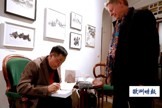 首發(fā)儀式上,法國中國文學讀者紛紛與楊志鵬進行交流,楊志鵬則為法國讀者一一簽名贈書。當晚,還舉行了興安、艾米的水墨畫展,為現(xiàn)場增加了更為濃郁的中國文化元素氛圍。