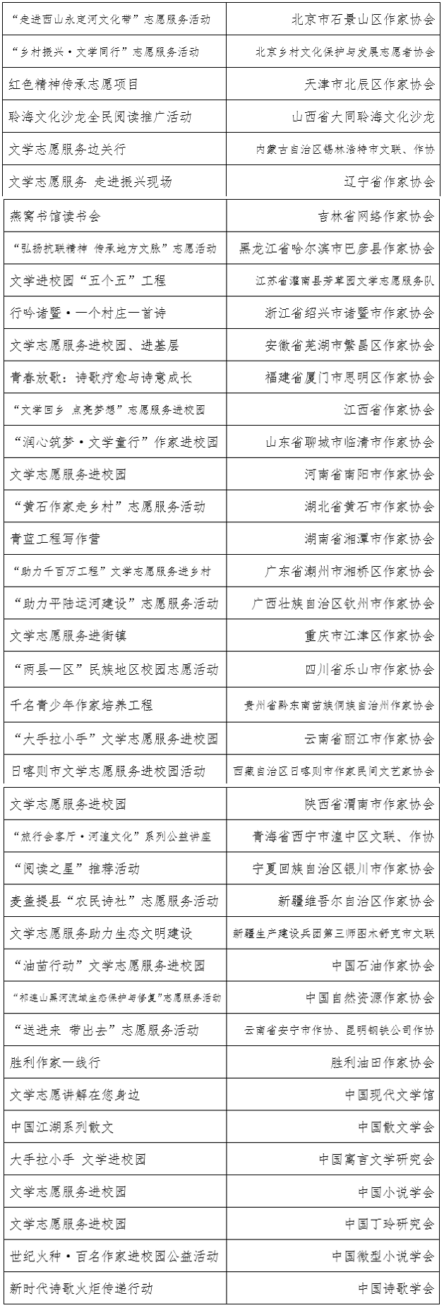 2024年文學(xué)志愿服務(wù)示范性重點(diǎn)扶持項(xiàng)目名單公布