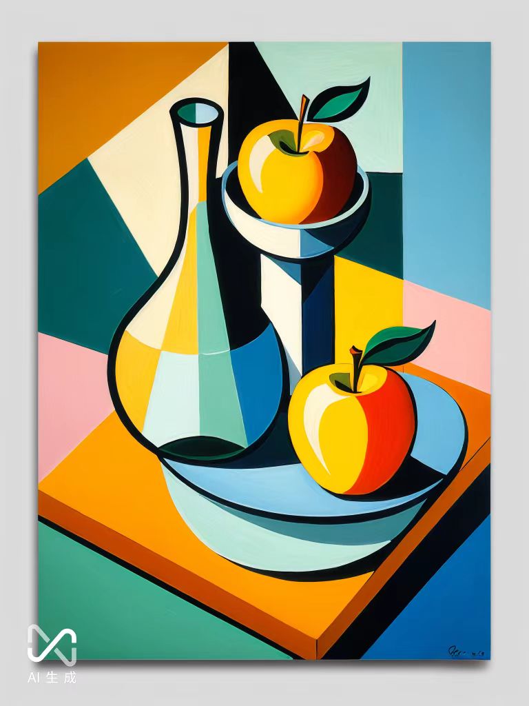 AI的立體主義風(fēng)格“蘋果”畫好啦,不得不說,蘋果仍然是我們熟悉的樣子,關(guān)鍵詞“抽象”并未得到準(zhǔn)確體現(xiàn)。
