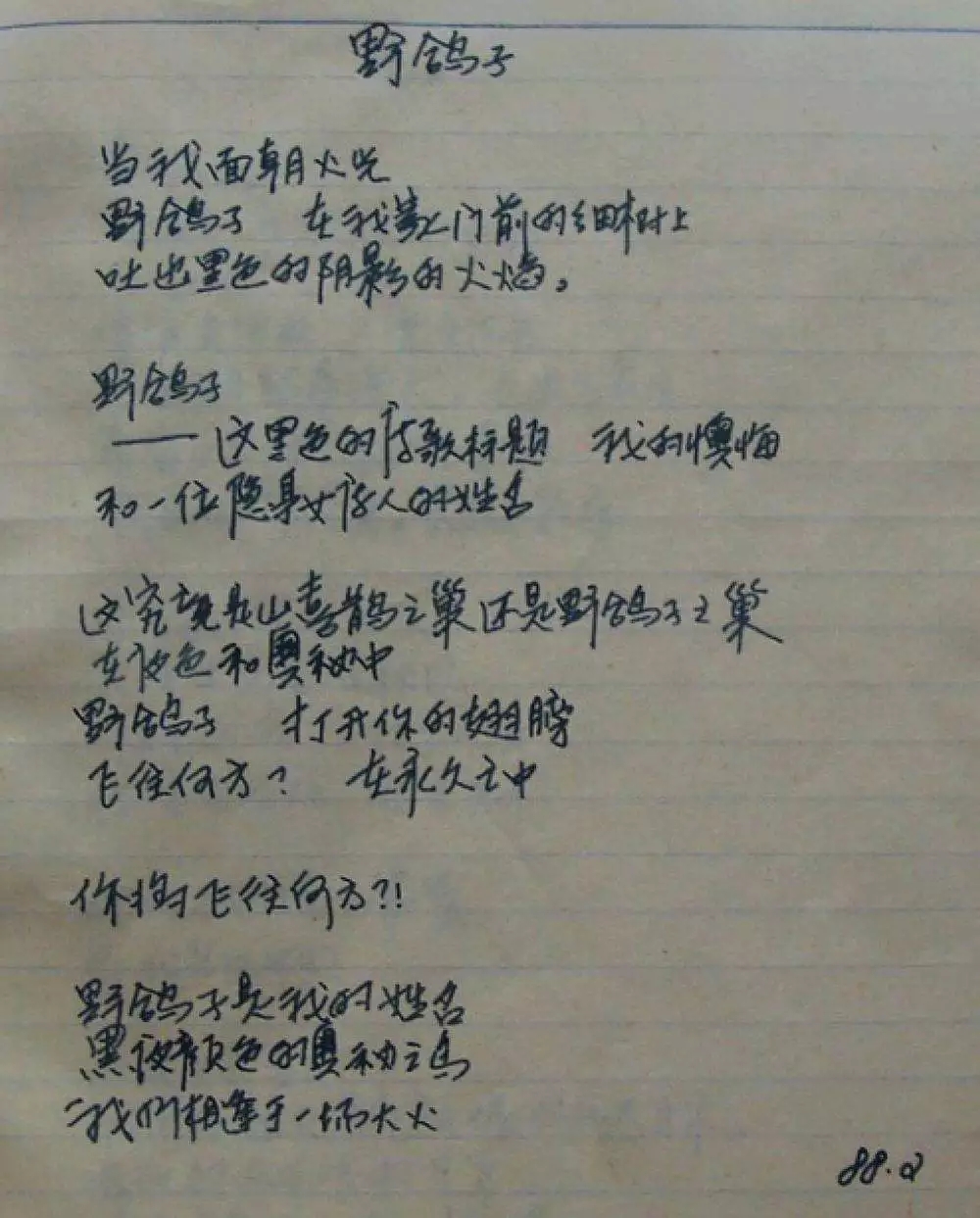 海子這篇寫于1985年10月的文章,是他生前為數(shù)不多的詩歌評論,同時也是一篇被《海子詩全集》漏收的佚文。盡管此文目前呈現(xiàn)的內容殘缺不全,但從字里行間依然能看出海子獨特的評論才華,海子熟練地運用散文筆法寫作詩歌評論,使這篇詩歌評論具有了不一樣的風格和文本魅力。