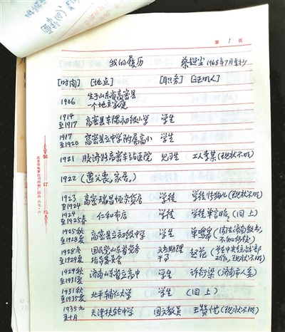 我們先來看蔡超塵高中及以后的人生經(jīng)歷,墨箋樓拍賣的1968年7月4日重抄的“我的履歷”顯示,蔡超塵1931年從山東省立高中畢業(yè)后考取了北平輔仁大學(xué)國(guó)文系,1935年畢業(yè)后到1949年前的14年間,擔(dān)任過多所學(xué)校的國(guó)文教員,其中1935年冬天到1937年夏天做了近兩年的《華北日?qǐng)?bào)·每日文藝》副刊編輯。
