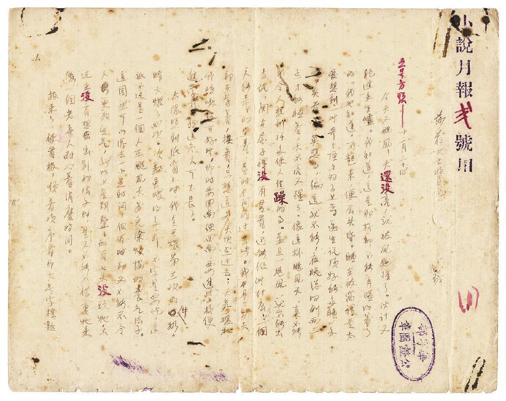此次展覽陳列的51位作家75件手稿中,筆跡風(fēng)格千姿百態(tài),作家生命性情畢現(xiàn)。丁玲的小說《夢珂》是處女作,《莎菲女士的日記》是成名作,兩部短篇小說都是葉圣陶慧眼識珠,發(fā)表在上海的《小說月報》上,其手稿奇跡般地被保存下來。作者的鋼筆手跡,字體圓潤,鋒芒自若,不刻意,不做作,洋洋灑灑,一瀉千里,其筆力之雄厚,文氣之豐沛,令人為之神往。編輯用毛筆在手稿上留下的修改文字,很老到,很認(rèn)真,頗見慧眼匠心。