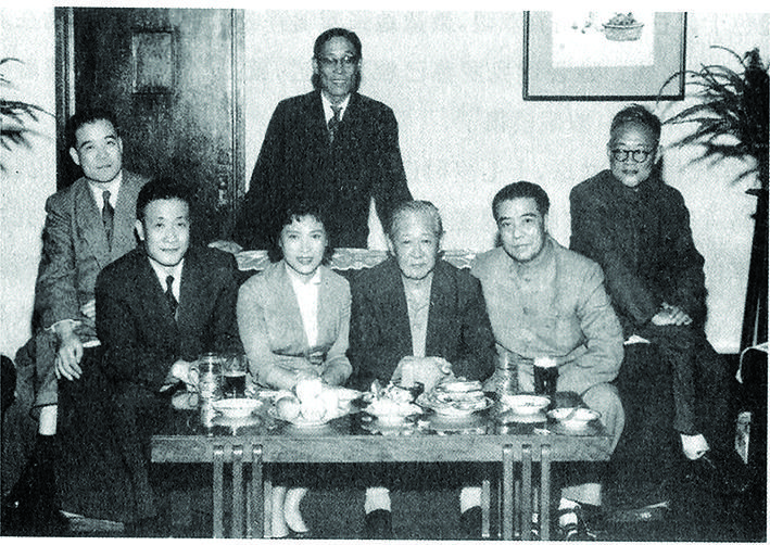 1962年,(坐者從左往右)羅蓀、劉白羽、秦怡、中島健藏(日本友人)、陽(yáng)翰笙、巴金合影