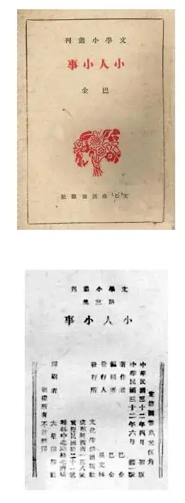 《小人小事》有兩種初版本這個有趣的版本現(xiàn)象,很值得巴金研究者留意。而且,據(jù)《中國近代現(xiàn)代叢書目錄》(1979年9月上海圖書館編?。?,《小人小事》還有一九四三年六月成都文化生活出版社的第三種初版本,但我未見原書。