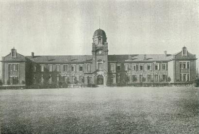 經(jīng)過一段時(shí)間對(duì)提鎮(zhèn)行轅的修整,1905年9月14日,學(xué)校終于順利在吳淞開學(xué)了。校舍雖然陳舊,規(guī)模倒不小。學(xué)校門前是一面照墻,照墻邊上兩根旗桿,東西兩扇門,貼著門神秦叔寶和尉遲恭。進(jìn)了儀門,是一個(gè)石板甬道,徑直向前拾級(jí)而上經(jīng)過一個(gè)平臺(tái),便到了大堂,那里用作禮堂,也兼飯?zhí)?。兩廡有二三十間平屋,遙夾甬道,東西相向,作課堂、宿舍、辦公室。大堂里面,前后有三進(jìn)平屋,正中后進(jìn)六七間,是校長室、教職員宿舍,其余都是課堂及學(xué)生宿舍。有一個(gè)化學(xué)實(shí)驗(yàn)室,又搭了幾間板屋,做浴室、廁所、盥洗處,就在各宿舍的前廊。學(xué)校房間總數(shù)在60間左右:8間講堂,大小21間寢室,4間盥洗室,2間浴室,1間理發(fā)室,大小11間教職員寢室,1間閱報(bào)室,大小3間理化室,1間會(huì)客室,1間廚房,2間儲(chǔ)藏室,1間調(diào)養(yǎng)室,4處廁所等。只是學(xué)生宿舍不足,只夠80人寄宿,學(xué)校不得不在淞滬鐵路對(duì)面的吳淞懷遠(yuǎn)里另租幾幢三間兩廂房的石庫門與幾間沿著市河(今淞濱路)的房子做校外宿舍。