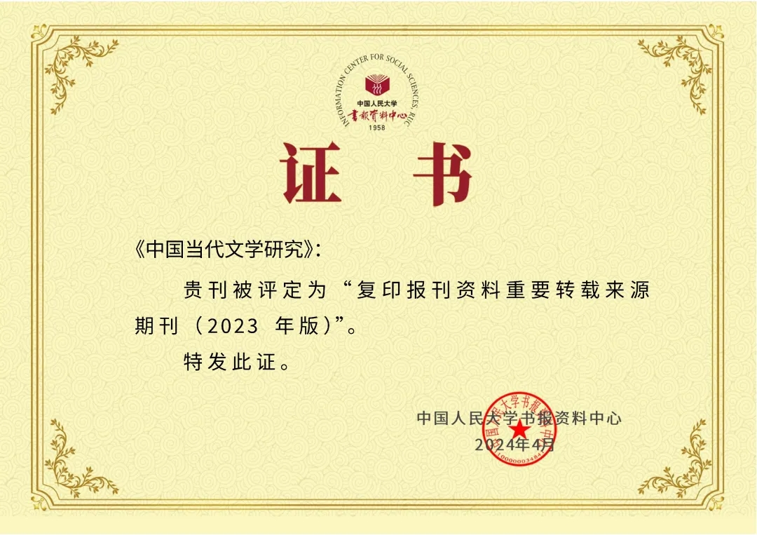 《中國當(dāng)代文學(xué)研究》入選“復(fù)印報刊資料重要轉(zhuǎn)載來源期刊(2023年版)”