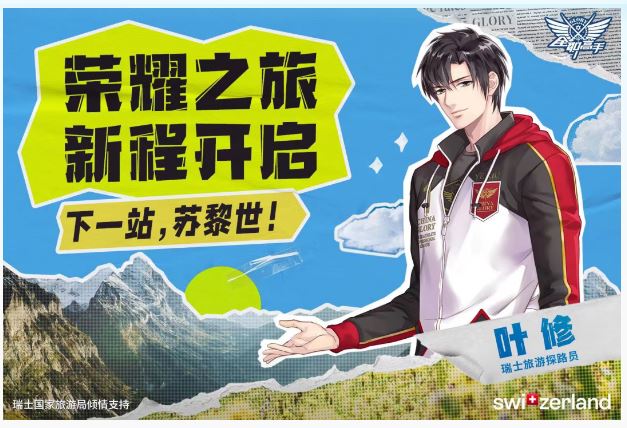 5月29日,閱文集團攜手瑞士國家旅游局共同宣布,將發(fā)起“全職高手:25年相約蘇黎世計劃”,開展為期一年的深度海外文旅營銷活動,其中,《全職高手》主角葉修還將擔任2025年“瑞士旅游探路員”,這一天也是葉修的生日。