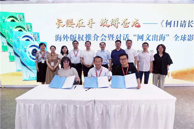 6月19日,第30屆北京國際圖書博覽會(BIBF)開幕當(dāng)日,安徽文藝出版社的《何日請長纓》海外版權(quán)推介會暨對話“網(wǎng)文出海”全球影響力活動在安徽館舉辦。