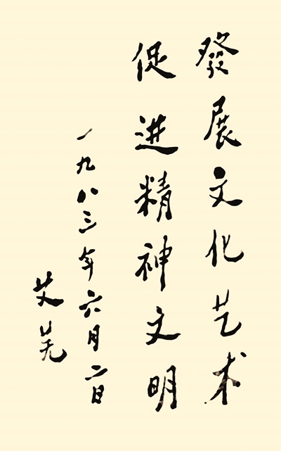 艾蕪于1983年6月在新都文聯(lián)成立籌備會期間題詞