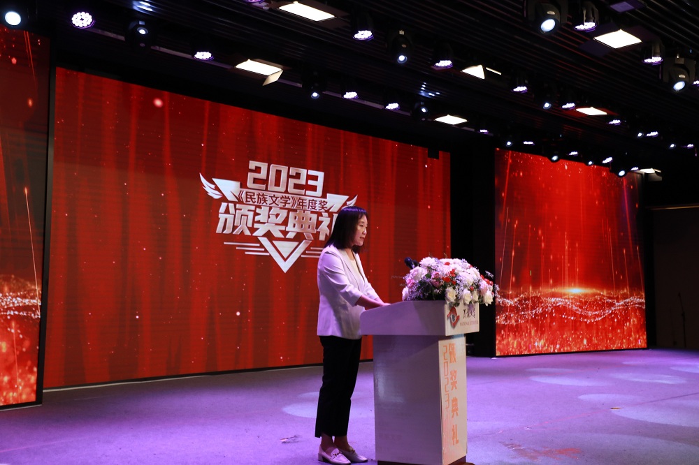 陳亞軍在致辭中談到,《民族文學》創(chuàng)刊四十多年來,始終秉持發(fā)展繁榮少數(shù)民族文學、團結少數(shù)民族作家、培養(yǎng)少數(shù)民族文學新人、促進民族團結進步的辦刊宗旨,以鑄牢中華民族共同體意識為主線,以構筑中華民族共有精神家園為己任,推出了大量優(yōu)秀作品,培養(yǎng)了大量創(chuàng)作人才,相當一批少數(shù)民族文學名家大家從《民族文學》起步,走向全國乃至世界。她祝愿作家們以此次獲獎為新的起點、新的動力和新的激勵,以新視野、新境界,以超越的雄心、突破的勇氣和創(chuàng)新的手法,用情用力講好中國故事,描繪新時代城鄉(xiāng)崛起、山鄉(xiāng)巨變尤其是各族人民的嶄新精神風貌,向世界展現(xiàn)可信、可愛、可敬的中國形象,為實現(xiàn)中國式現(xiàn)代化貢獻少數(shù)民族文學力量。