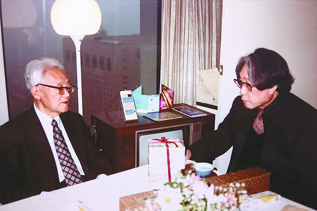 1984年5月在東京,野間宏來飯店拜訪巴金(左)。