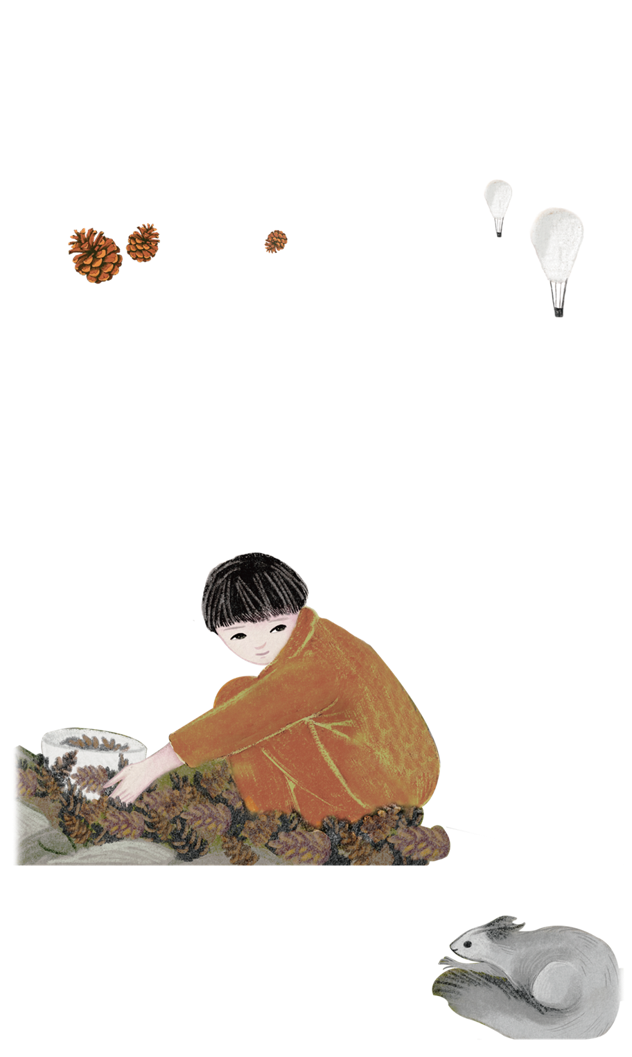 爸爸是個(gè)打塔人,從高高的紅松樹上把紅松塔打下來。紅松塔里的松子經(jīng)過加工,運(yùn)往國內(nèi)國外的城市,再擺上超市的貨架。