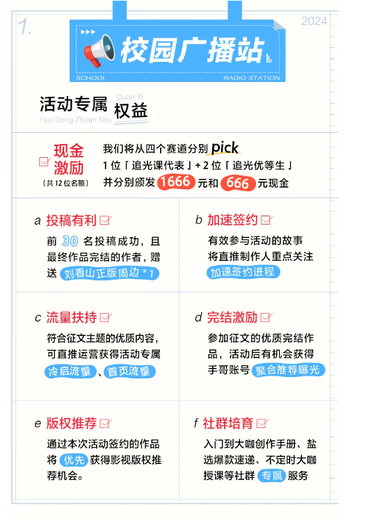 追光鹽計劃·校園季“校園添新鹽”征文火熱進行中,由知乎鹽言故事、揚子江網(wǎng)絡文學評論中心聯(lián)合發(fā)起,尋找四大賽道全能磕“鹽”家,一起創(chuàng)作精彩校園故事。