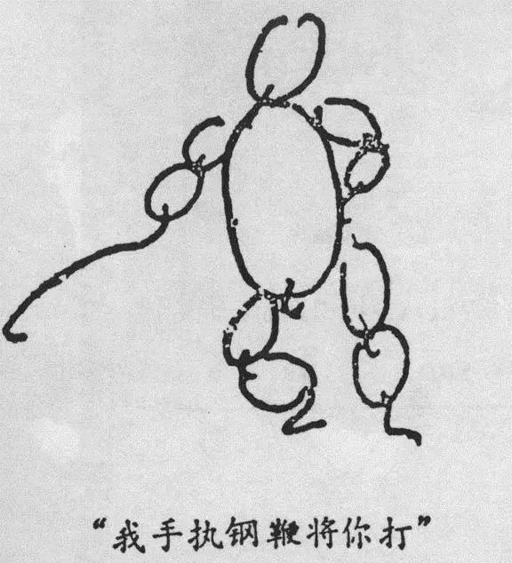 1933年2月上旬,瞿秋白第二次來到魯迅家中避難。瞿秋白對魯迅的著作素有研究,他撰寫1.7萬字的《〈魯迅雜感集〉序言》,是研究魯迅的重要文獻。瞿秋白對魯迅的代表作《阿Q正傳》,也有深刻的見解。這次避難中,瞿秋白繪制了兩幅關于阿Q的漫畫。其中,《我手執(zhí)鋼鞭將你打》,堪稱既抽象又寫意“阿Q漫畫”,整個人物由10個大寫的英文字母Q,巧妙構(gòu)成,包括頭、身體各一個,四肢各兩個,共10個,構(gòu)思獨出機杼,造型夸張傳神,令人莞爾。畫面左邊,前臂上的一個Q字,其一撇特別長,略有彎曲,形似鋼鞭,非常契合小說中阿Q的唱詞:“我手執(zhí)鋼鞭將你打……”又可看作主人公阿Q臨終簽字畫押的那個沒有畫圓的“圈兒”。整幅漫畫線條簡潔,想象奇特,妙趣橫生。