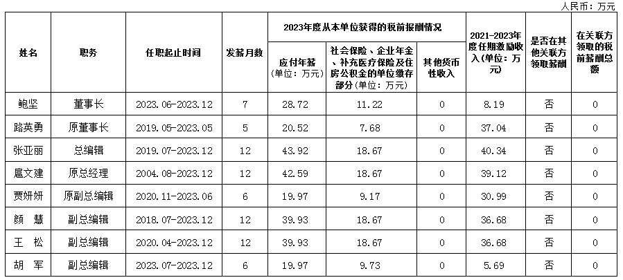 作家出版社有限公司企業(yè)負(fù)責(zé)人2023年度薪酬情況