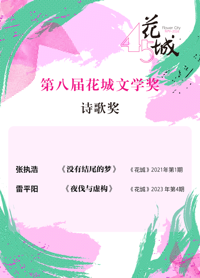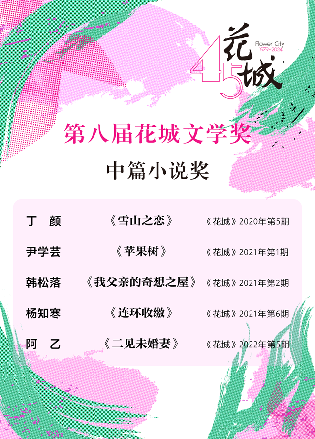 第八屆花城文學(xué)獎評選時間范圍為《花城》雜志2019年第1期—2023年第6期,以及2020—2021年3期長篇專號(5年,共33期雜志)收入作品,設(shè)長篇小說、中篇小說、短篇小說、詩歌、散文、評論獎。