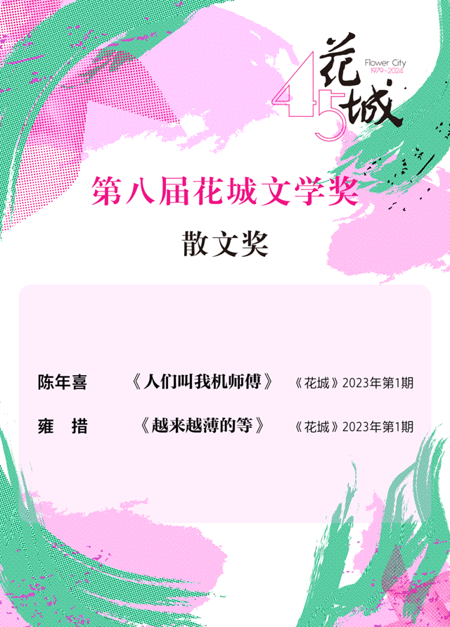 2024年,適逢《花城》《隨筆》雜志創(chuàng)刊45周年、在紙間跳躍的回響中,由花城出版社、花城文學(xué)院、《花城》雜志與《隨筆》雜志主辦的第八屆花城文學(xué)獎,為2024年南國書香節(jié)的重要活動之一。