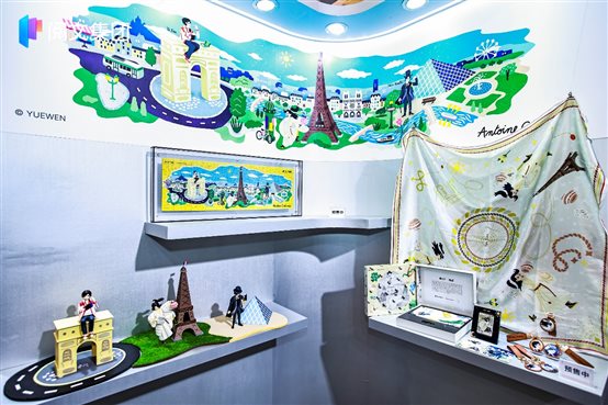 閱文還首次展出了一系列中法文化合作的IP衍生品。今年,閱文與法國埃菲爾基金會、中法品牌美學(xué)中心聯(lián)合發(fā)起“閱賞巴黎”計劃,邀請法國知名插畫師安托萬·卡比諾(Antoine Corbineau)操刀設(shè)計,將《慶余年》范閑、《全職高手》葉修、《詭秘之主》克萊恩·莫雷蒂等中國IP角色融入埃菲爾鐵塔、凱旋門、盧浮宮等法國地標(biāo),形成東西方文化交融的獨特藝術(shù)作品,并進(jìn)行IP衍生開發(fā)。