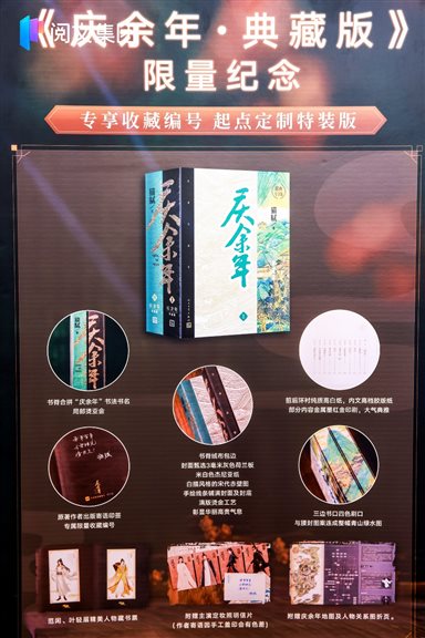 此次書展,由閱文獨家定制的《慶余年典藏版》限量紀(jì)念套裝正式首發(fā)(人民文學(xué)出版社出版)。書籍設(shè)計工藝精美,配有作者出版寄語印簽、專屬限量收藏編號,同時附贈精美人物藏書票、電視劇主演明信片、慶余年地圖折頁,以及起點讀書App、騰訊動漫App線上用戶權(quán)益。據(jù)了解,《慶余年第二季》播出后,起點讀書的原著閱讀量提升了38倍。IP影視化再次帶動了原著的火爆。