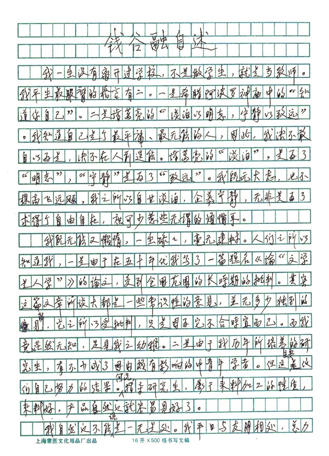 錢谷融自述手稿 圖片由普陀區(qū)圖書館提供,收錄于華東師范大學(xué)名師庫(kù)數(shù)字平臺(tái)