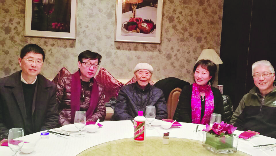 二〇一七年大年初一的團(tuán)聚,弟子許子?xùn)|(左二)、王曉明(右一)、楊揚(yáng)(左一)、王雪瑛(右二)等向錢谷融先生恭賀新春 圖片由作者提供