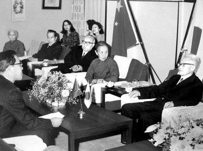 1980年春,巴金(右一)與冰心(右二)訪日期間留影