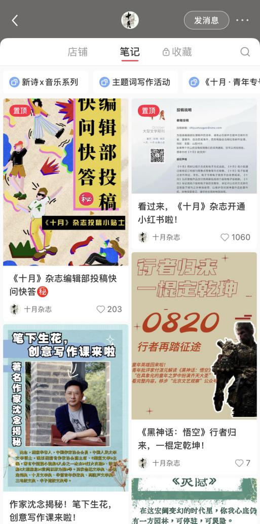 “十月雜志”小紅書號界面