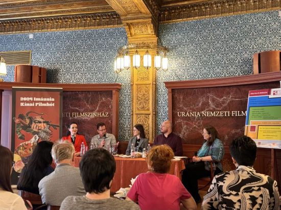 恰逢“2024影像亞洲中國電影放映周”在布達(dá)佩斯拉開帷幕,此次讀書分享活動(dòng)結(jié)合電影放映,與讀者探討文學(xué)與電影的關(guān)系?;顒?dòng)由俱樂部發(fā)起人,著名漢學(xué)家、翻譯家宗博莉·克拉拉主持。電影專家杜達(dá)斯·維克多(DUDáS VIKTOR),作家、大學(xué)教授格列維奇·安德拉斯(GEREVICH ANDRáS), 羅蘭大學(xué)博士生、博主托瑪·勞拉(TORMA LAURA),卡羅利·加斯帕爾改革大學(xué)助理教授瓦拉德·維多利亞博士(DR. VáRADI VIKTóRIA)4位嘉賓以圓桌會(huì)談的形式在舞臺(tái)上自由暢談、各抒己見、交鋒觀點(diǎn)、碰撞思想,為讀者朋友們帶來了一場別具一格的文學(xué)盛宴。