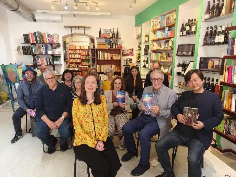 第一場分享會(huì)在羅馬知名的“文學(xué)酒館”書店 (Enoteca Letteraria Roma)舉行,書店位于擁有上千年歷史的羅馬市中心斗獸場附近,洋溢著濃厚的人文氣息。意大利布雷西亞作家、漢學(xué)家、花達(dá)西亞出版社社長雪蓮女士 (Fiori Picco) 、羅馬歷史小說家勞拉· 西亞萊女士( Laura Cialè) 和羅馬協(xié)會(huì)會(huì)長、哲學(xué)家卡基唐·斯堪卡雷洛先生 (Gaetano Scancarello) 三位嘉賓就王威廉作品展開熱烈對話,吸引了“重生思想”文學(xué)沙龍的知名作家、詩人、畫家等參加。讀者分享會(huì)的氣氛既專業(yè)又富有人情味。大家就王威廉作品中關(guān)于人類歷史的想象和探索尤感興趣。勞拉表示:從王威廉身上,能感受到中國知識分子的才華橫溢與儒雅氣質(zhì),特別是濃厚的人文關(guān)懷精神。