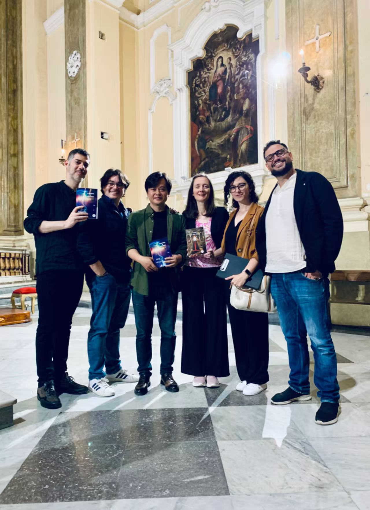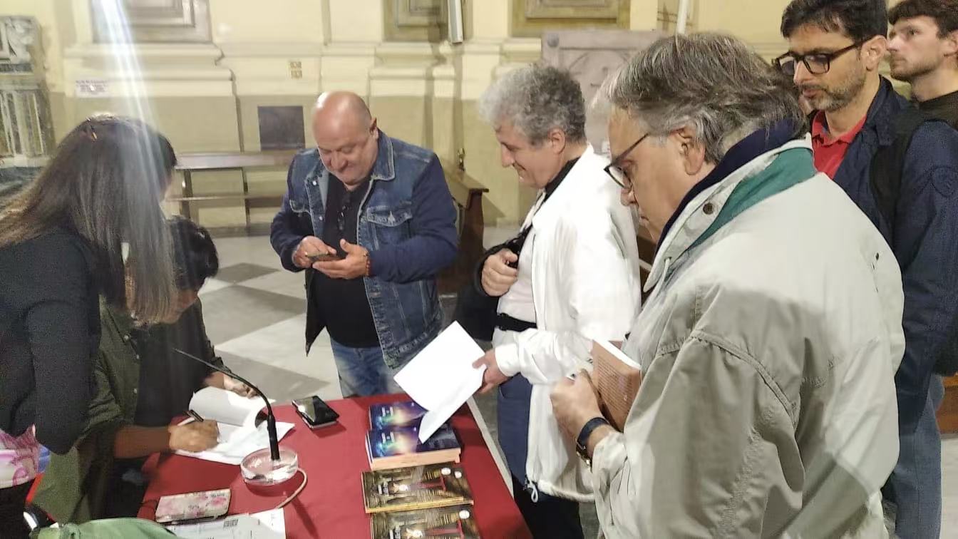 第二場活動(dòng)在那不勒斯 (Napoli) 市中心古老的圣喬治大教堂舉行 (Chiesa di S. Giorgio Maggiore), 由本迪科文化協(xié)會(huì)(Gruppo Bendicò) 組織。那不勒斯歷史小說家、記者、語言學(xué)家斯特法諾·科蒂斯 (Stefano Cortese) 和文學(xué)代理人、主編、編輯安德烈亞·科羅納 (Andrea Corona) 主持。意大利著名電視劇和電影演員 喬瓦尼·埃姆拉 (Giovanni Amura) 和羅塞拉·里沃利 (Rossella Rivoli) 朗誦了《第二人》和《行星與記憶》中的精彩片段。攝影師安妮婭女士(Anya Surgan) 為活動(dòng)拍攝了充滿藝術(shù)感的照片。中國文學(xué)與意大利文學(xué)的美妙聲音在古老的教堂穹頂下交織回響,營造出文明互鑒的和諧氣氛。獨(dú)特的活動(dòng)設(shè)計(jì)為意大利讀者留下了難忘的印象。