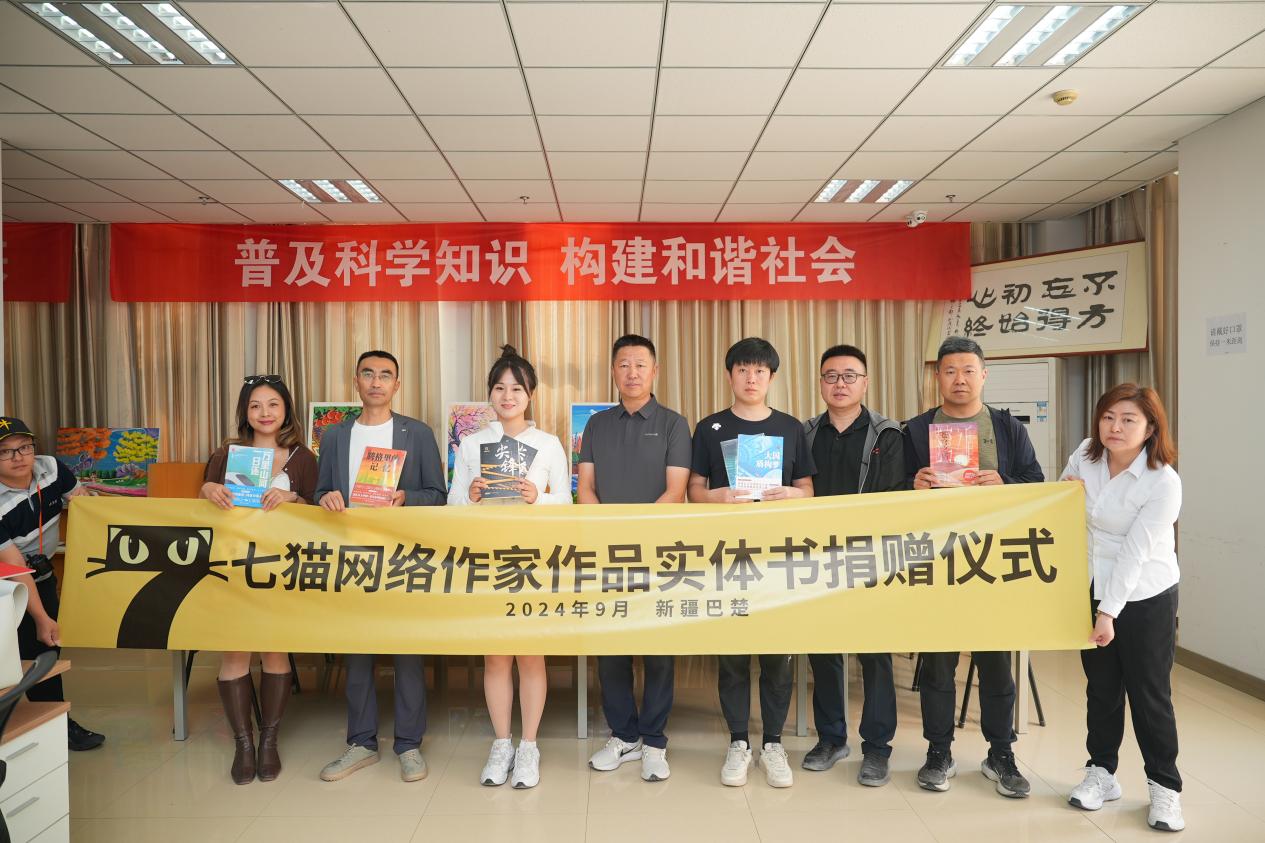 9月12日,七貓網(wǎng)絡作家一行抵達喀什地區(qū)的“東大門”,古“絲綢之路”的重要驛站——巴楚,向巴楚縣圖書館捐贈圖書120余冊,包括現(xiàn)實題材作品《騰格里的記憶》《大國盾構夢》《智能覺醒》《萬里山河一日還》《蒼穹之盾》《尖鋒》等。《騰格里的記憶》作者白馬出涼州、《大國盾構夢》《智能覺醒》作者銀月光華、《蒼穹之盾》作者伴虎小書童、《尖鋒》作者顧天璽參加活動捐贈圖書?!昂芨吲d我的作品能出現(xiàn)在巴楚圖書館,《尖鋒》是一本公安題材小說,展現(xiàn)了黨員輔警在維護社會治安、打擊犯罪過程中的英勇事跡和復雜心理。能夠為新疆的讀者們帶來一些精神營養(yǎng),為文化援疆作出貢獻,我感到十分有意義?!鳖櫶飙t說到。