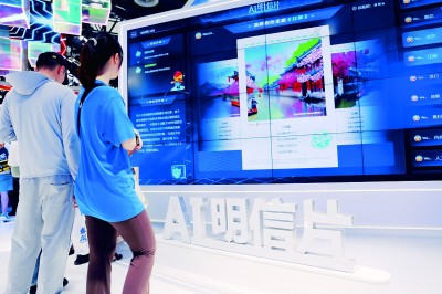 新的人工智能技術(shù)可以為人們提供定制詩歌和明信片。圖為觀眾正體驗可以生成詩歌的AI大模型。光明圖片/IC PHOTO