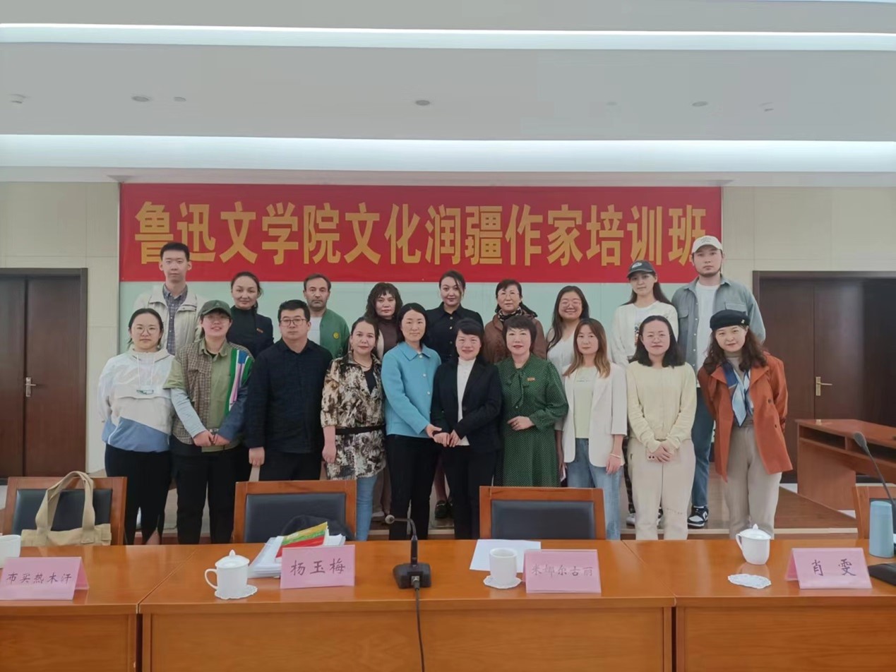 布買熱木汗·吾不力卡司木與同事在魯院文化潤疆作家培訓(xùn)班上