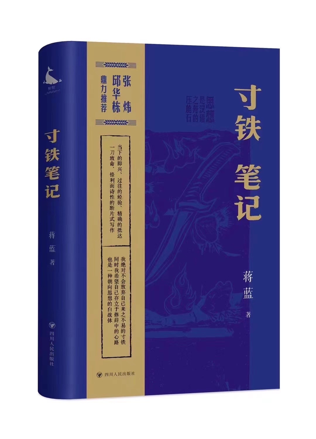 《寸鐵筆記》是作家蔣藍(lán)近十多年來有意為之的“斷片寫作”的匯編,收錄其思想隨筆、讀書筆記一百來篇,并按主題將全書分為“思的寸鐵”“火與蛙”“箍桶匠與厚黑學(xué)”“話語的舌頭”四輯。這四輯隨筆貫穿了作者蔣藍(lán)多年來對(duì)客觀世界的深度思考,涵蓋了歷史、社會(huì)、自然、人生、中外文化等方面隨想隨感,其文廣博深遠(yuǎn),其言鏗鏘有力。