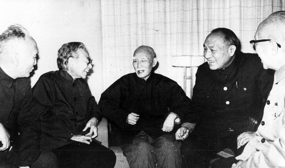 一九八四年十二月十八日,民進在京舉行七屆二中全會。葉圣陶(中)、雷潔瓊(左二)等在民進七屆二中全會期間親切交談。