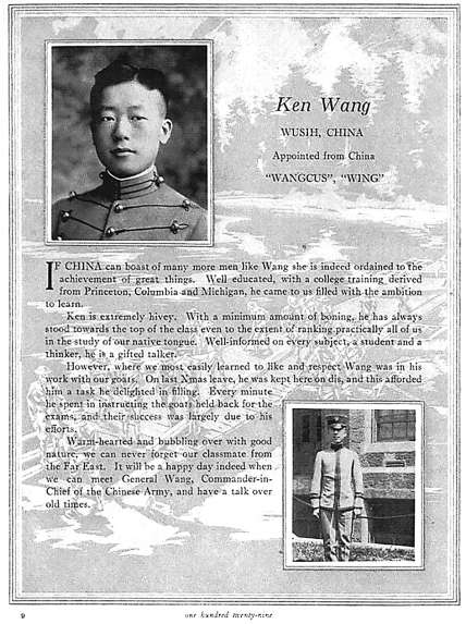 西點軍校學(xué)生刊物《榴彈炮》上關(guān)于當(dāng)屆畢業(yè)生王賡的一頁