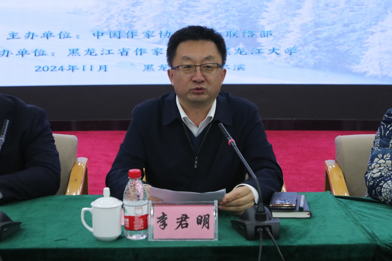 李君明介紹了黑龍江大學(xué)校史以及文學(xué)院的發(fā)展歷程與發(fā)展成果。他說,此次活動是對龍江創(chuàng)意寫作人才培養(yǎng)的支持,黑大文學(xué)院通過聘請優(yōu)秀作家學(xué)者與文化產(chǎn)業(yè)領(lǐng)域資深人士擔(dān)任校外導(dǎo)師,推進(jìn)校內(nèi)外導(dǎo)師合作,博采眾長、聚沙成塔。希望此次活動開拓師生視野,為龍江創(chuàng)意寫作發(fā)展注入新鮮活力。