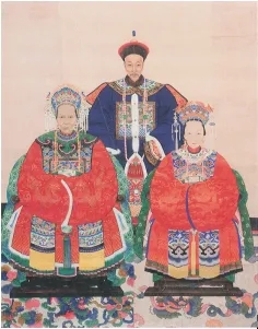 據(jù)《越城周氏支譜》記載,孫月仙“生道光癸巳九月十九日子時(shí),卒同治甲子九月初五日亥時(shí)”[23],即生于1833年10月31日,卒于1864年10月5日。她于1858年生周德(周氏兄弟的大姑母),1860年生周伯宜(周氏兄弟的父親)[24]655;其間還生育過(guò)一個(gè)兒子,但夭折了[25]。她去世時(shí)僅有31歲,與幼年魏連殳眼中“年青,好看”的形象相符合。孫月仙畫像現(xiàn)藏紹興魯迅紀(jì)念館,這是一張周福清與孫氏、蔣氏的彩繪神像,縱167.8厘米,橫113.5厘米,20世紀(jì)50年代由周作人捐贈(zèng)(見(jiàn)圖1)。由于有兩名子女長(zhǎng)大成人,孫月仙在周氏家族中一直被紀(jì)念,周作人稱其為“先祖妣孫太君”,在日記中記載了周家在其生辰、忌日對(duì)她的祭祀。