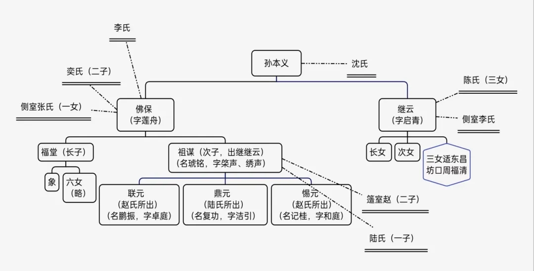 從《紹興孫氏宗譜》,可以看到孫氏家族相關(guān)人物關(guān)系(見(jiàn)圖2):