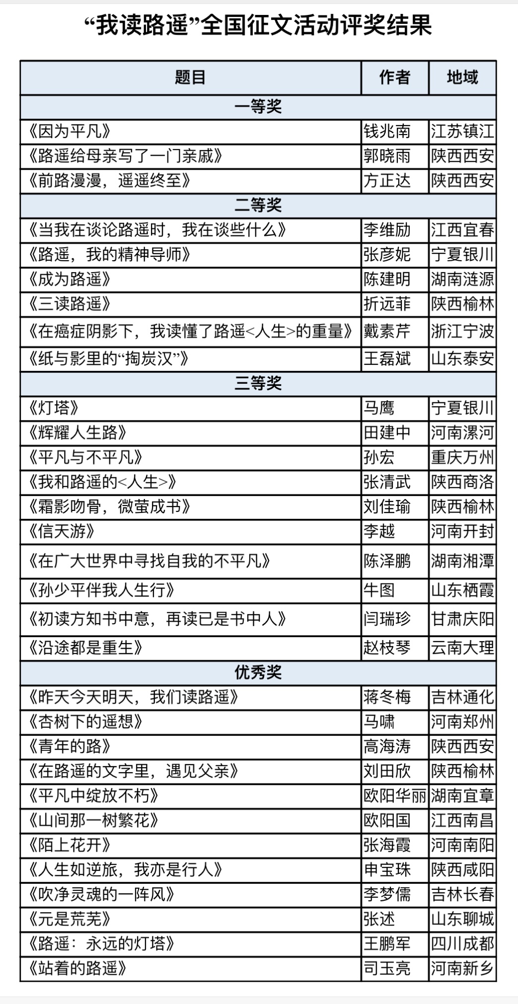 “我讀路遙”全國(guó)征文活動(dòng)評(píng)獎(jiǎng)公告