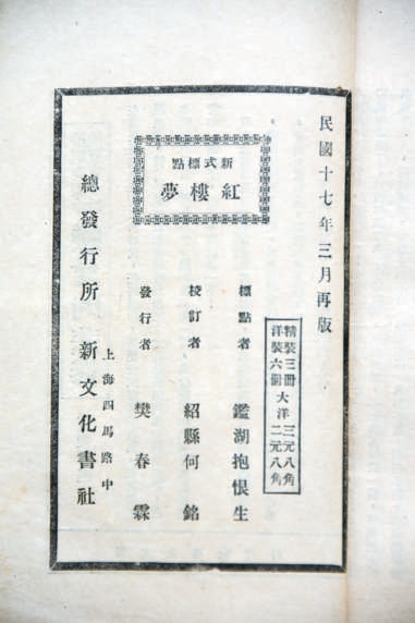 1928年3月由上海新文化書社再版的六冊版《紅樓夢》,書名為唐駝題寫